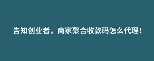 • 告知?jiǎng)?chuàng)業(yè)者,商家聚合收款碼怎么代理!