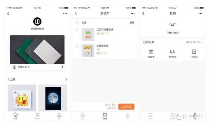 購買商品時,商家只需向客人發(fā)貨。小程序中融入了兩種不同的場景;