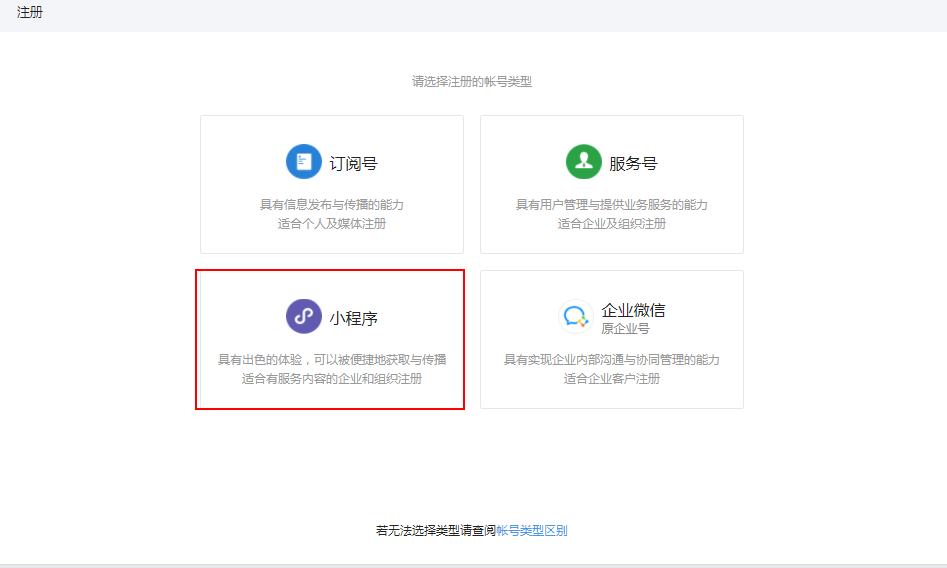 根據信息填寫相關信息,完成注冊后以個人或企業(yè)身份申請小程序。