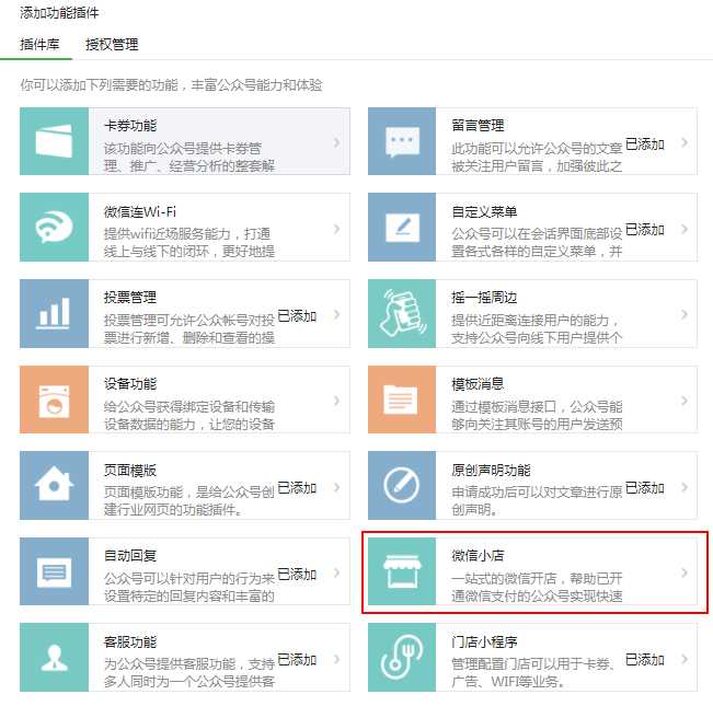 如果上述條件已經完成,可以在微信微信官方賬號中添加功能插件。