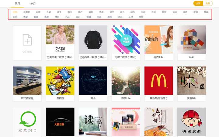 這里有很多行業(yè)的小程序模板,非常直觀。